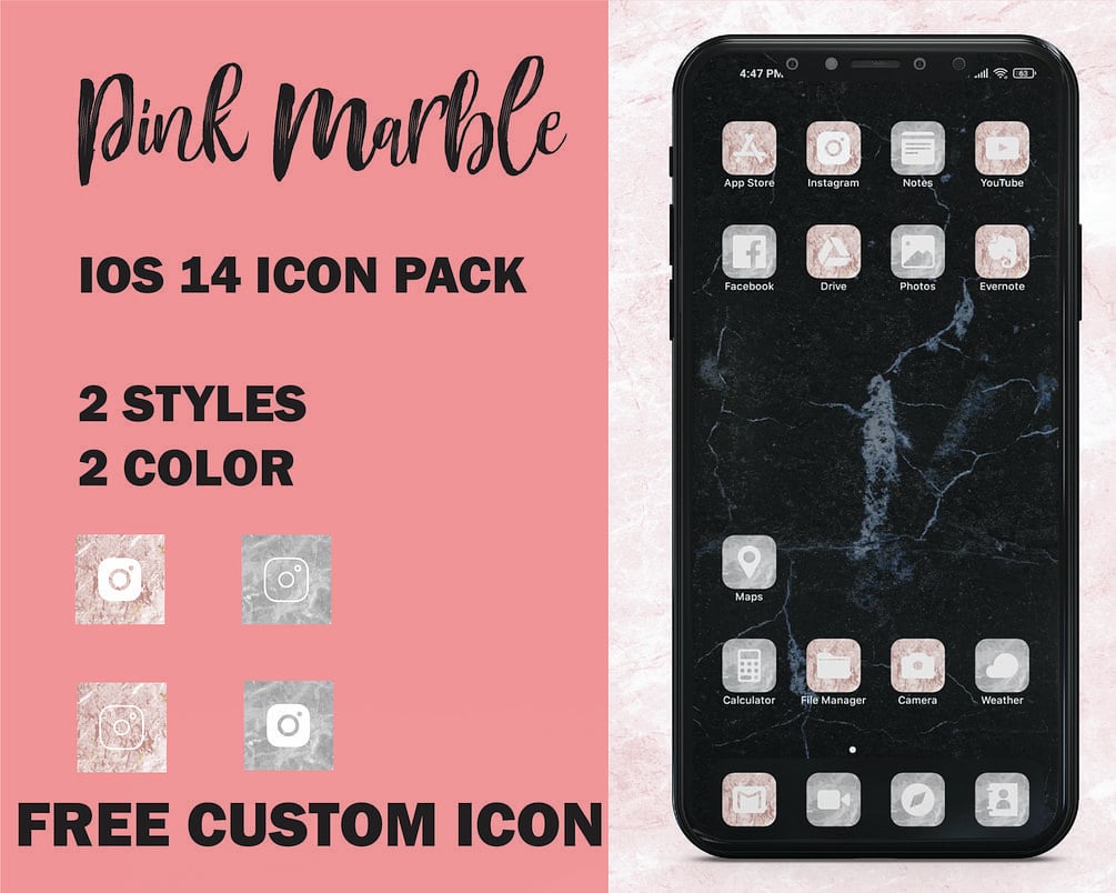 Ios14 Pink Marble Icon Pack Rose Gold Iphone Iphone App Icons Bundle Aesthetic Home Screen Free Wallpaper